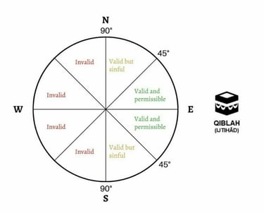The position of Masjid al-Ash'ariyya of South Philadelphia is a codified and unified position. We accept the General Direction of Prayer (Qiblah). (See diagram below)